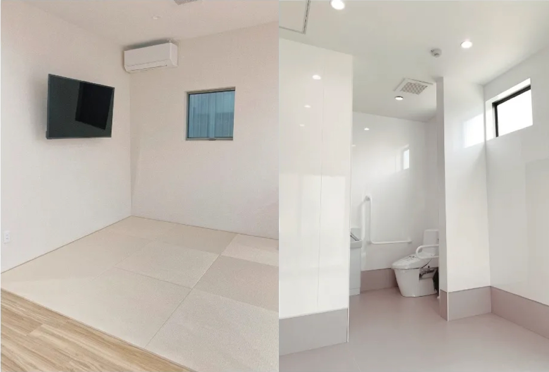 ご利用者さまのご家族付き添いで安心して過ごせる待機室や畳スペース、大きくて使いやすいトイレなど付き添いの方も安心して過ごせる環境づくりにもこだわっています。