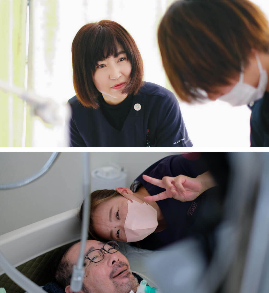 ASAHIでは、利用者さま一人ひとりの生活背景や価値観を大切にしながら、医師・ケアマネジャー・介護職などの多職種と連携し、チームで在宅療養を支えています。