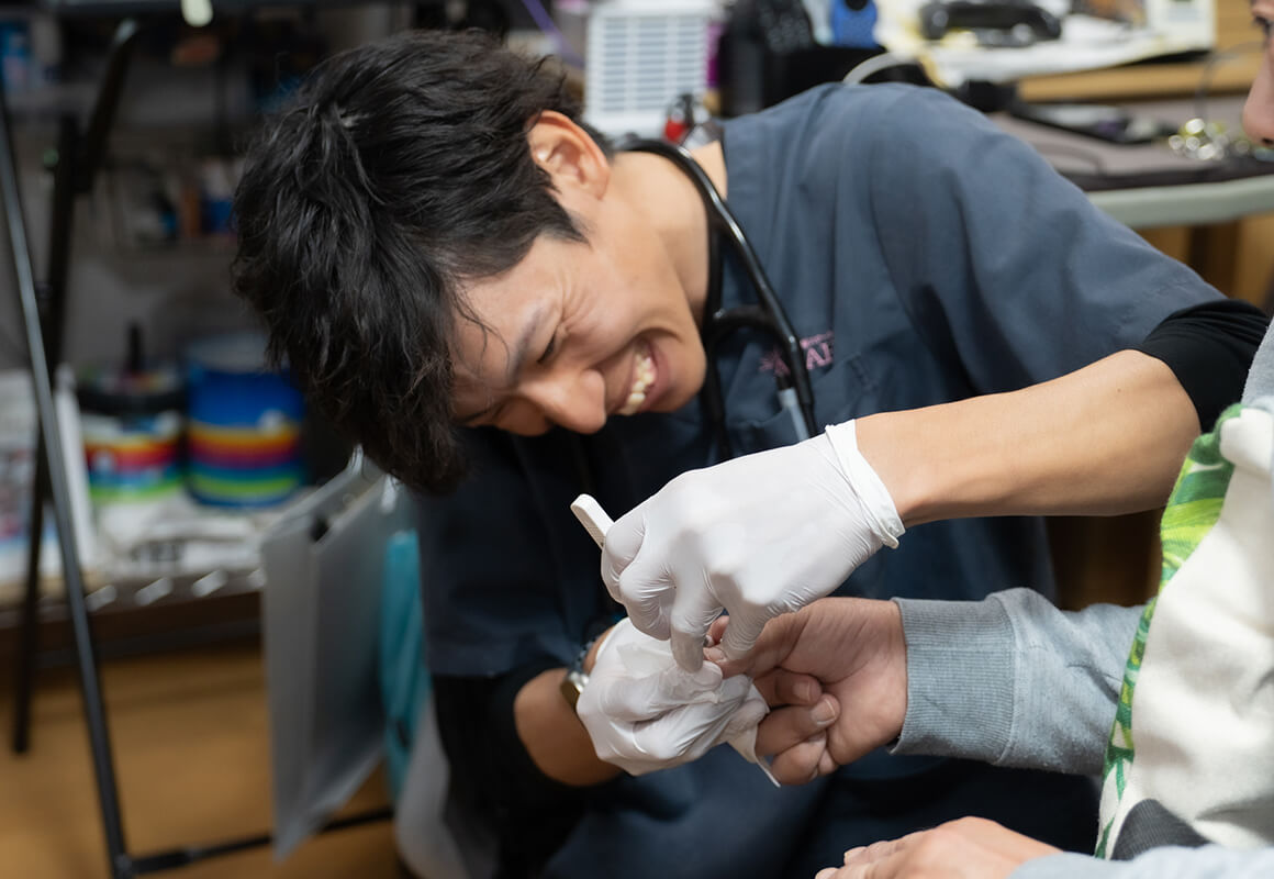 時間が空けばステーションへ戻り、事務作業や、報告・連絡・記録などを行います。業務が終了したら、管理者に必要なことを報告して、翌日の支度のため、備品を訪問カバンに詰めたりします。直行直帰もOK!事務所に出入りすることに縛られず、結構自由に働けるのもASAHIの魅力です!