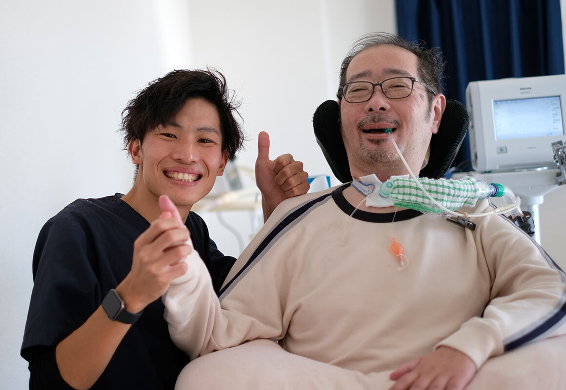 パーキンソン病の方、ALS(筋萎縮性側索硬化症)の方、精神科疾患の方や重度の医療的ケアが必要な方など、ご利用者さまの中には意思表示が難しい方もいます。何をして欲しいのか?何をすれば症状が緩和するのか?仕草や行動一つ一つを確認しながらケアする現場です。